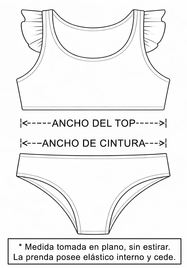 Talle 16: Ancho del top 27 cm, Ancho de cintura 26 cm
