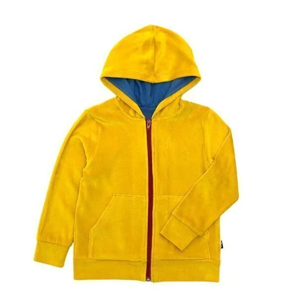 Campera lisa de plush, con bolsillos y cierre combinado! Capucha forrada con jersey de algodón.