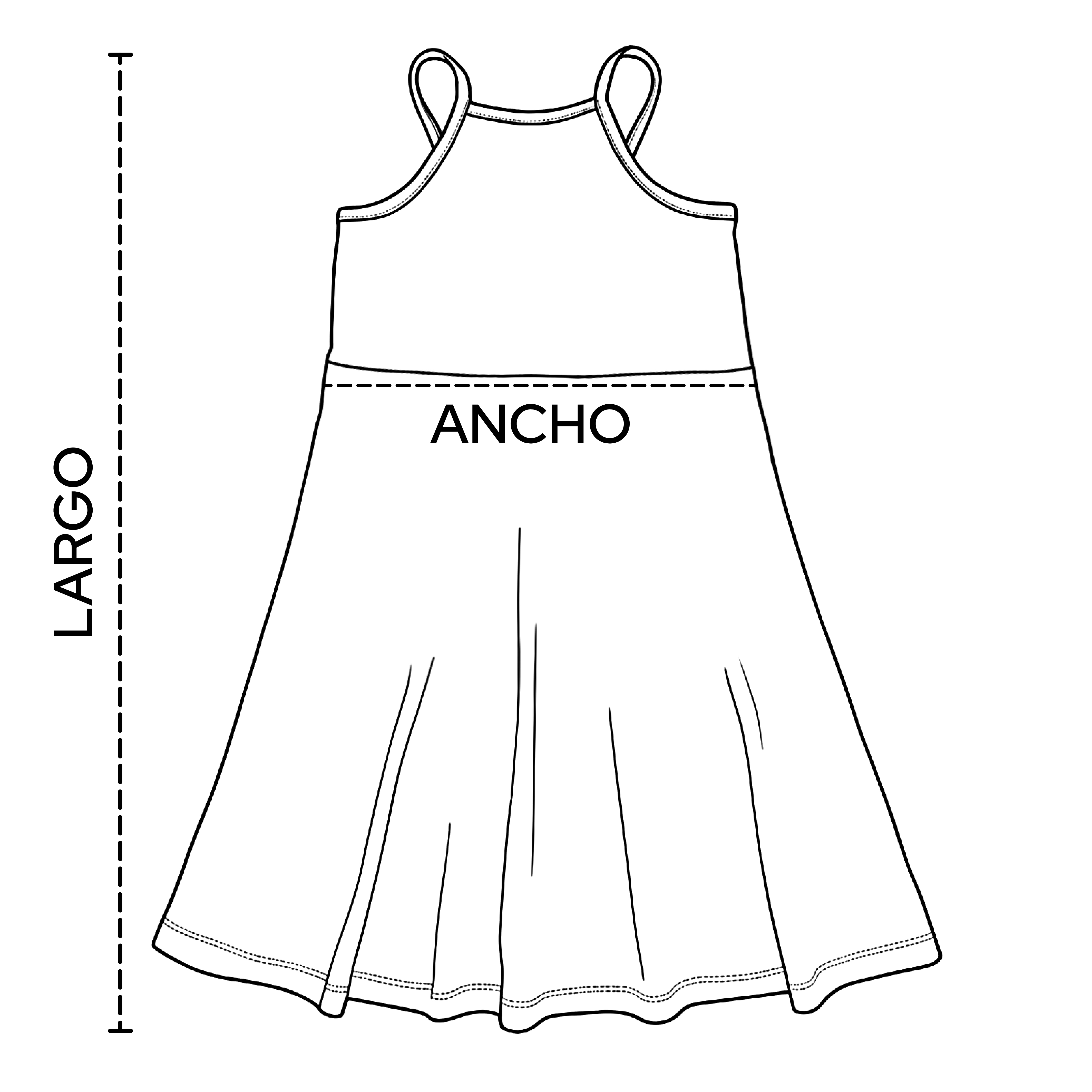 Talle 8: Ancho 25 cm, Largo (Sin breteles) 59 cm