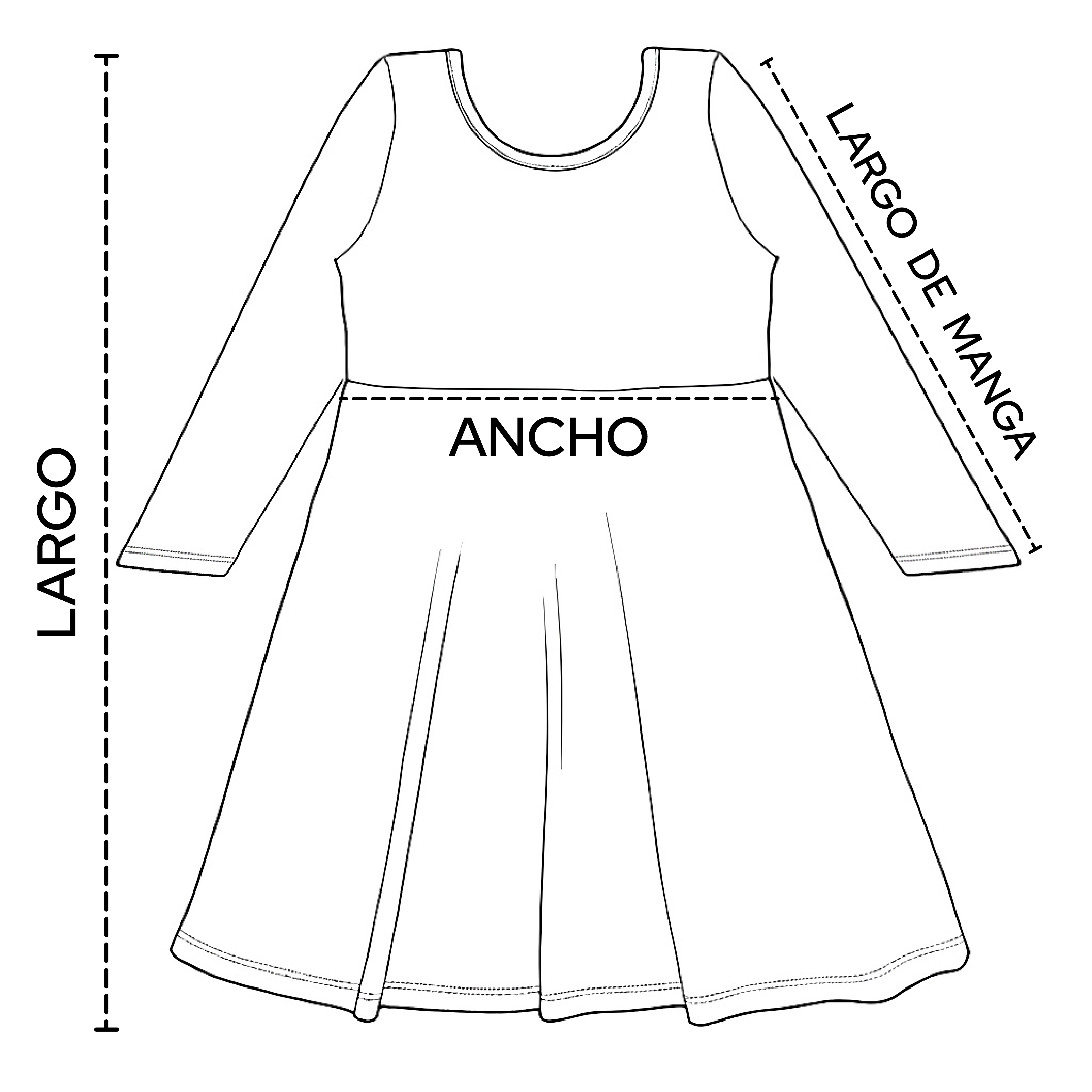 Talle 6: Ancho 30 cm, Largo 60 cm, Largo de mangas 38 cm